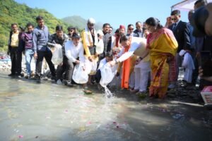पौड़ी गढ़वाल : मुख्यमंत्री पुष्कर सिंह धामी ने विधानसभा क्षेत्र यमकेश्वर के ग्राम पंचायत किनसुर बागी पहुंचकर तीन दिवसीय नयार उत्सव-2024 का शुभारंभ किया। इस अवसर पर उन्होंने गंगा पूजन किया, महाशीर प्रजाति की मछली के सीड्स का प्रवाह तथा राफ्टिंग दल को हरी झंडी दिखाकर रवाना किया।