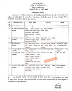 देहरादून: तत्काल प्रभाव से भारतीय प्रशासनिक सेवा के निम्नलिखित अधिकारियों को उनके नामों के सम्मुख कॉलम-3 में अंकित उनकी वर्तमान तैनाती के पदभार / विभाग में से कॉलम-4 में उल्लिखित पदभार से अवमुक्त करते हुए, कॉलम-5 में उल्लिखित पदभार / विभाग में तैनात किया जाता है:-