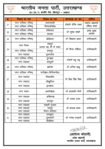 देहरादून: भाजपा ने प्रदेश मे सभी नगर निगम, नगर पालिका तथा नगर पंचायतों मे चुनाव संचालन के लिए समन्वयक नियुक्त किये है।