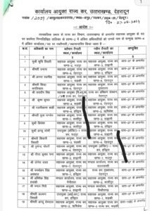 राज्य कर विभाग में बम्पर ट्रांसफर, आदेश जारी