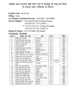 भीषण सड़क हादसे में एक बात स्पष्ट तौर पर सामने आ चुकी है कि बस में क्षमता से अधिक सवारियां भरी गई थी। ताजा जानकारी के मुताबिक यूज़र्स लिमिटेड रामनगर की यह बस मरचूला से पहले अल्मोड़ा जिले के कूपी बैंड के पास अनियंत्रित होकर गहरी खाई में जा गिरी। 42 सीटर बस में लगभग तीन दर्जन से अधिक यात्री सवार थे। विस्तृत विवरण की प्रतीक्षा है। राष्ट्रपति मुर्मू, पीएम मोदी, गृह मंत्री अमित शाह व रक्षा मंत्री राजनाथ सिंह ने दुर्घटना पर शोक जताया।