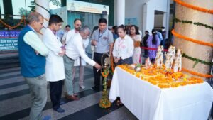 मंगलवार को श्री महंत इन्दिरेश अस्पताल के प्रांगण में दीपोत्सव का शुभारंभ श्री गुरु राम राय इंस्टीट्यूट ऑफ मेडिकल एण्ड हैल्थ साइंसेज़ के प्राचार्य डाॅ अशोक नायक, श्री महंत इन्दिरेश अस्पताल के मुख्य चिकित्सा अधीक्षक डाॅ उत्कर्ष शर्मा, श्री दरबार साहिब के अधिकृत हस्ताक्षरी प्रबन्धक विजय नौटियाल, एसजीआरआर विश्वविद्यालय के समन्वयक डाॅ आर.पी.सिंह, चिकित्सा अधीक्षक डाॅ अजय पंडिता, चिकित्सा अधीक्षक डाॅ गौरव रतूड़ी व नर्सिंग अधीक्षक अनीस ने दीप प्रज्जवलित कर किया। अस्पताल परिसर में एसजीआरआर स्कूल ऑफ नर्सिंग की छात्राओं द्वारा बनाई गई मनमोहक रंगोली सेल्फी प्वाइंट का आकर्षक केन्द्र रही। अस्पताल स्टाफ लक्ष्मी नैनवाल अराध्या एवम् अनन्या ने गढ़वाली गीतों पर मनमोहक नृत्य की प्रस्तुति दी। बच्चों की प्रस्तुति का दर्शकों ने तालियों के साथ समर्थन किया।