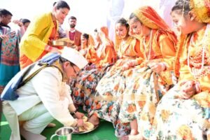 गौचर: मुख्यमंत्री पुष्कर सिंह धामी ने बृहस्पतिवार को गौचर में आयोजित ‘नंदा-गौरा’ महोत्सव में प्रतिभाग किया। उन्होंने कहा कि हमारी मातृशक्ति प्रधानमंत्री नरेंद्र मोदी द्वारा दिए गए आत्मनिर्भर भारत और वोकल फॉर लोकल’’ के मंत्र को धरातल पर उतारने का काम कर रही है। मातृशक्ति के सहयोग से ही हमारा राष्ट्र उन्नति के नए शिखर को छू रहा है। इस अवसर पर मुख्यमंत्री ने सीमांत जनपद चमोली के लिये 400 करोड से अधिक़ की 604 विकास योजनाओं का लोकापर्ण एवं शिलान्यास किया। जिसमें 97 करोड लागत़ की 260 योजनाओं का लोकार्पण तथा 303 करोड़ की 344 योजनाओं का शिलानयास शामिल है। इस दौरान मुख्यमंत्री ने कन्या पूजन कर मातृशक्ति को भी सम्मानित किया।