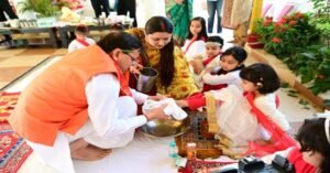 मुख्यमंत्री धामी ने दुर्गा नवमी के अवसर पर सपरिवार किया कन्या पूजन