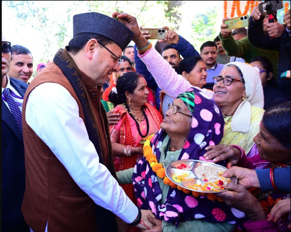 मुख्यमंत्री धामी पहुंचे अपने पैतृक गांव, ग्रामीणों ने किया स्वागत
