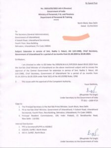 मुख्य सचिव राधा रतूड़ी को 6 महीने का सेवा विस्तार मिला, देखे आदेश