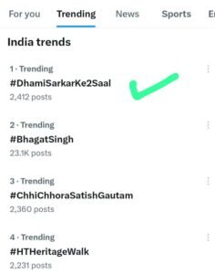 देहरादून: मुख्यमंत्री पुष्कर सिंह धामी की सरकार के दो साल का सोशल मीडिया पर भी खूब बोलबाला रहा। आज शनिवार को धामी सरकार के दो साल पूरे होने पर सोशल मीडिया यूजर्स ने सरकार के फैसलों, कार्यों और गुड गवर्नेंस को भरपूर समर्थन दिया। एक्स प्लेटफॉर्म पर हैशटैग धामी सरकार के दो साल दिनभर टॉप ट्रेडिंग में बना रहा।