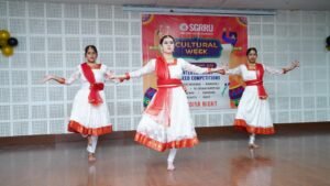 देहरादून: श्री गुरु राम राय विश्वविद्यालय में 7 से 10 अक्टूबर तक रंगारंग सांस्कृतिक सप्ताह का भव्य आयोजन किया जा रहा है। सोमवार को सांस्कृतिक सप्ताह का भव्य आगाज़ हुआ। सांस्कृतिक सप्ताह में छात्र-छात्राओं के लिए विभिन्न प्रतियोगिताएं आयोजित की जाएंगी इनमें रंगोली, पोस्टर मेकिंग, क्विज, वाद-विवाद, नृत्य, गीत एवम् सांस्कृति कार्यक्रमों की प्रतियोगिताएं शामिल हैं। सोमवार को कार्यक्रम का उद्घाटन श्री गुरु राम राय विश्वविद्यालय के पथरी बाग कैंपस स्थित सभागार में किया गया। विश्वविद्यालय के प्रेसिडेंट श्रीमहंत देवेन्द्र दास जी महाराज ने सांस्कृतिक सप्ताह के सफल आयोजन के लिए आयोजकों को शुभकामनाएं प्रेषित की।