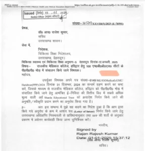 इससे पूर्व, स्वास्थ्य सचिव ने निदेशक चिकित्सा शिक्षा को भेजे पत्र में