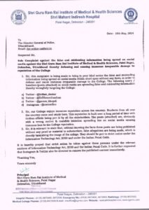 - मेडिकल कॉलेज के बारे में आपत्तिजनक पोस्ट करने वालों के खिलाफ डीजीपी को भेजी शिकायत