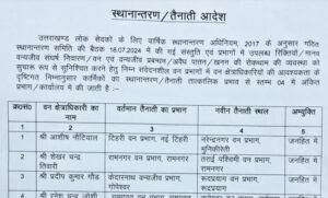 देहरादून: वन विभाग में रेंजरों की एक और तबादला सूची जारी हुई है। सूची में 12 वन क्षेत्राधिकारियों के नाम शामिल हैं।