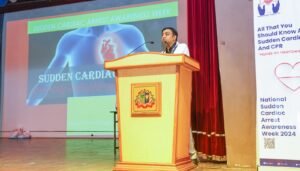 देहरादून: श्रीमहंत इन्दिरेश अस्पताल की ओर से सेंट जोसेफ एकेडमी के छात्र-छात्राओं को कार्डियक डेथ से बचाव को लेकर जागरूकता गोष्ठी का आयोजन किया गया। रिवाइव हार्ट फाउंडेशन के स्टेट कॉर्डिनेटर व श्रीमहंत इंदिरेश हॉस्पिटल के वरिष्ठ कार्डियोलॉजिस्ट प्रोफेसर डॉ. तनुज भाटिया ने हार्ट अटैक और कॉर्डियक अरेस्ट के कारणों, लक्षणों, बचाव के उपायों व कार्डियक अरेस्ट की स्थिति में दिए जा सकने वाले प्राणरक्षक प्राथमिक उपचार के बारे में विस्तार से जानकारी दी। डाॅ तनुज भाटिया ने स्कूली बच्चों को जानकारी दी कि हार्ट अटैक की इमरजेंसी दौरान कैसे सीपीआर देकर मरीज़ को मेडिकल हेल्प दी जा सकती है।