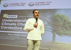 देहरादून: आईआईटी बाम्बे के प्रोफेसर चेतन सिंह सोलंकी ने छात्र-छात्राओं से सोलर एनर्जी का ज्यादा से ज्यादा उपयोग करने का आह्वान किया। सोलरमैन नाम से प्रसिद्ध प्रोफेसर चेतन सोलांकी आज ग्राफिक एरा में अण्डरस्टैडिंग क्लाईमेट चेंज एण्ड करेक्टिव एक्श्न पर व्याख्यान दे रहे थे। उन्होंने छात्र-छात्राओं को जलवायु परिवर्तन के प्रभावों की जानकारी देते हुए कहा कि आज के समय में जलवायु परिवर्तन एक बढ़ी समस्या बन चुका है।