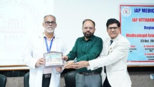 देहरादून: श्री महंत इन्दिरेश अस्पताल के शिशु एवं बाल रोग विभाग द्वारा ’ब्रिजिंग फ्रॉम थ्योरी विद प्रैक्टिस इन वैक्सीनोलॉजी ’ विषय पर एक दिवसीय कार्यशाला का आयोजन किया गया। यह कार्यशाला इंडियन एकेडमी ऑफ पीडियाट्रिक्स (आई.ए.पी.) के सहयोग से आयोजित की गई। कार्यक्रम का शुभारंभ श्री गुरु राम राय इंस्टीट्यूट ऑफ मेडिकल एंड हेल्थ सांइसेज के प्रिंसिपल डाॅ. अशोक नायक, रजिस्ट्रार, अनुसंधान एवं विकास श्री गुरु राम राय विश्वविद्यालय, डॉ. पंकज मिश्रा, श्री महंत इन्दिरेश अस्पताल के मुख्य चिकित्सा अधीक्षक, डॉ. उत्कर्ष शर्मा, शिशु एवं बाल रोग विभागाध्यक्ष, डॉ. बिदुं अग्रवाल एवं वरिष्ठ शिशु एवं बाल रोग विशेषज्ञ व सचिव आई.ए.पी., देहरादून, डॉ. तन्वी खन्ना द्वारा संयुक्त रूप से दीप प्रज्जवलन कर किया गया।