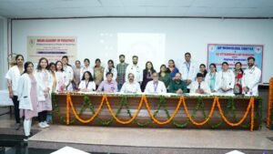 वरिष्ठ शिशु एवं बाल रोग विशेषज्ञ, चिरंजीव अस्पताल, रूड़की, डॉ. सुधीर चैधरी ने अपने विषय टीकाकरण के बाद पेश आने वाली प्रतिकूल घटनाएं (साईड इेफैक्टस), ए.इ.एफ.आई. के बारे में बताया। उन्होंने शिशु एवं बाल रोग विशेषज्ञों को बताया कि विभिन्न टीकाकरण के बाद उभरने वाले दुष्प्रभावों को कैसे नियंत्रित किया जाए।